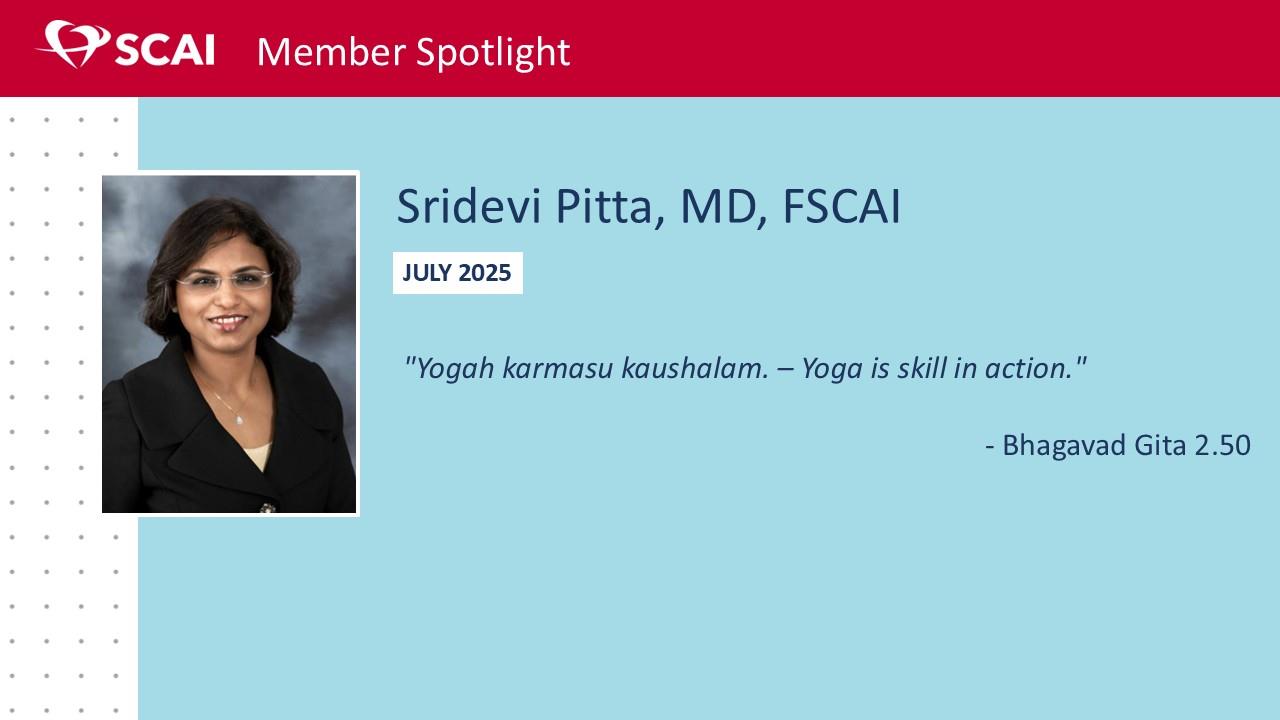 2025's July spotlight is Dr. Sridevi Pitta! Their question for the community is: