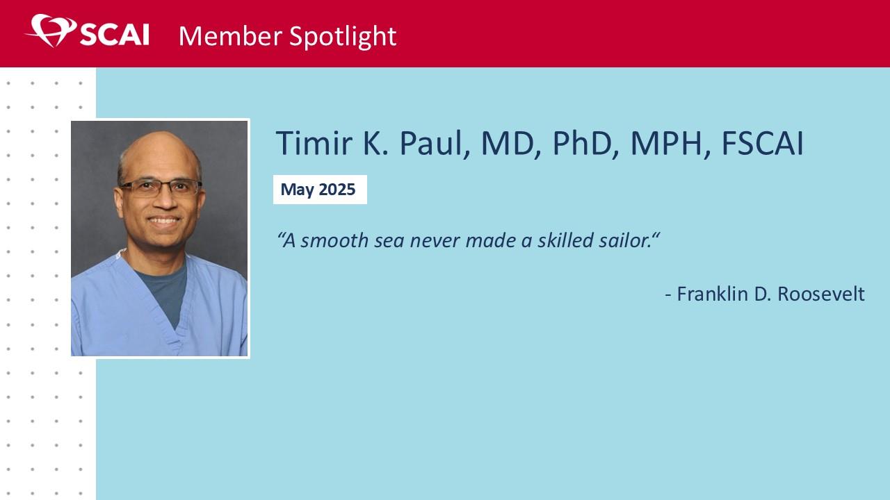 2025's May spotlight is Dr. Timir K. Paul! What they would like to know about the community is: Can you increase the usage of intravascular imaging during PCI? Reply here.